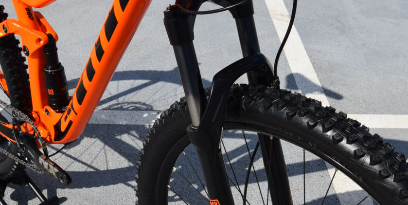 Rear Shock: X-Fusion Nude Trunnion, Scott custom with travel and geo adjust, 120mm-85mm, 3 modes (Lockout, Traction Control, Descend), rebound adjust, 165mm X 45mm
